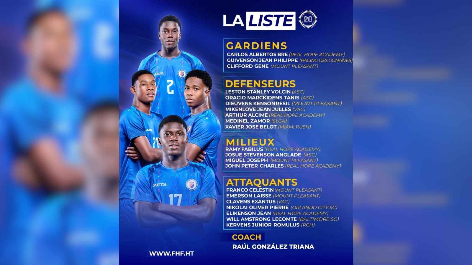 Le sélectionneur de l’équipe nationale haïtienne U20, Raúl González Triana, a rendu publique la liste des 21 joueurs retenus pour disputer les éliminatoires de la Coupe du monde U20, zone Concacaf. La compétition se déroulera à Curaçao du 26 février au 4 mars 2026.
