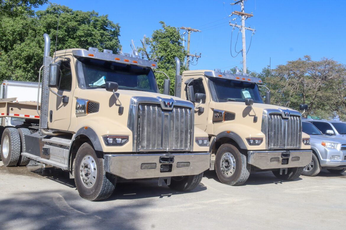 Two trucks donated by the U.S. to the Haitian National Police to support their fight against gangs in Port-au-Prince on Monday, Feb. 10 2025. Photo by Dieugo André for The Haitian Times.