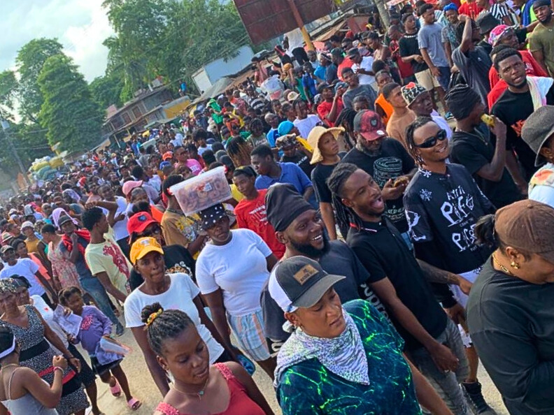 An enormous crowd of individuals danced within the streets amid a carnival-like environment. “Si w manyen Muscadin, wap boule” — “For those who contact Muscadin, you’ll get burned,” many sang collectively over the loud music.